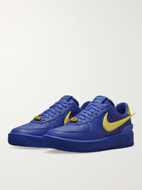 Nike partners with Japanese label AMBUSH® to add volume and vibrancy to the iconic 'Air Force 1' sneakers. This leather pair is detailed with a statement rubber 'Swoosh' that extends beyond the heel to evoke a sense of motion. Size & Fit - US 4 = UK 3.5/ EU 36 - US 4.5 = UK 4/ EU 36.5 - US 5 = UK 4.5/ EU 37.5 - US 5.5 = UK 5/ EU 38 - US 6 = UK 5.5/ EU 38.5 - US 6.5 = UK 6/ EU 39 - US 7 = UK 6/ EU 40 - US 7.5 = UK 6.5/ EU 40.5 - US 8 = UK 7/ EU 41 - US 8.5 = UK 7.5/ EU 42 - US 9 = UK 8/ EU 42.5 - US 9.5 = UK 8.5/ EU 43 - US 10 = UK 9/ EU 44 - US 10.5 = UK 9.5/ EU 44.5 - US 11 = UK 10/ EU 45 - US 11.5 = UK 10.5/ EU 45.5 - US 12 = UK 11/ EU 46 - US 12.5 = UK 11.5/ EU 47 - US 13 = UK 12/ EU 47.5 - US 13.5 = UK 12.5/ EU 48 - US 14 = UK 13/ EU 48.5 Details & Care - Royal-blue leather (Cow), royal-blue and yellow and rubber - Lace-up - Designer colour: Game Royal/ Vivid Sulfur/ Game Royal - Style number: DV3464-400 - Nike follows its own size guide, therefore the size stated on the box will differ from the one provided in our size chart. To receive your correct fit, please refer to Size & Fit notes - This item has been imported