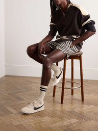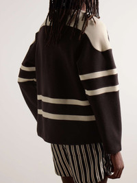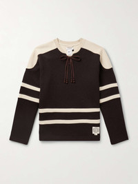 Nike's highly anticipated collaboration with Emily Bode showcases the designer's knack for re-imagining vintage sportswear. Inspired by old-school uniforms, this brushed-jersey sweatshirt is detailed with stitched-in stripes and fastens with heirloom-style, hand-laced ties. Size & Fit - Those who are above 6'1"/ 185cm may wish to take the next size up - Designed for a boxy fit - Mid-weight knit - Model is shown wearing a L - Model measures: chest 38"/ 96cm, height 6'2"/ 182cm Details & Care - Dark-brown and ecru brushed-jersey - 57% polyester, 35% wool, 8% nylon - Dry clean - Designer colour: Shadow Brown/ Ecru