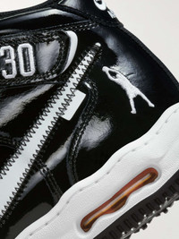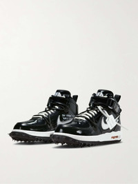 Debuted in 1982, Nike's 'Air Force 1' sneakers have been consistently in production for more than four decades. Made in collaboration with Off-White, this version reworks the uppers of the iconic design in black patent-leather and is detailed with plastic zip ties and textured rubber soles. Size & Fit - US 4 = UK 3.5/ EU 36 - US 4.5 = UK 4/ EU 36.5 - US 5 = UK 4.5/ EU 37.5 - US 5.5 = UK 5/ EU 38 - US 6 = UK 5.5/ EU 38.5 - US 6.5 = UK 6/ EU 39 - US 7 = UK 6/ EU 40 - US 7.5 = UK 6.5/ EU 40.5 - US 8 = UK 7/ EU 41 - US 8.5 = UK 7.5/ EU 42 - US 9 = UK 8/ EU 42.5 - US 9.5 = UK 8.5/ EU 43 - US 10 = UK 9/ EU 44 - US 10.5 = UK 9.5/ EU 44.5 - US 11 = UK 10/ EU 45 - US 11.5 = UK 10.5/ EU 45.5 - US 12 = UK 11/ EU 46 - US 12.5 = UK 11.5/ EU 47 - US 13 = UK 12/ EU 47.5 - US 13.5 = UK 12.5/ EU 48 - US 14 = UK 13/ EU 48.5 Details & Care - Black patent-leather, white leather - Lace-up and VELCRO® fastening - Style number: DR0500-001 - Nike follows its own size guide, therefore the size stated on the box will differ from the one provided in our size chart. To receive your correct fit, please refer to Size & Fit notes