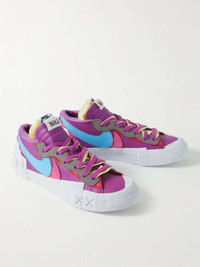 + Sacai + KAWS Blazer Low Suede-Trimmed Leather Sneakers