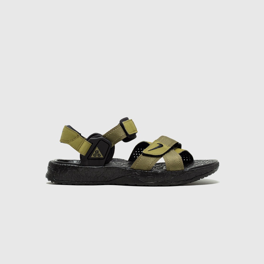 - DO8951 300 - Pilgrim/Black-Pilgrim-Black - Nike ACG's classic multi strap sandal made for the outdoors - Pilgrim nubuck & canvas upper - Pilgrim nubuck back support strap - Textured rubberized foam footbed - Durable rubber outsole