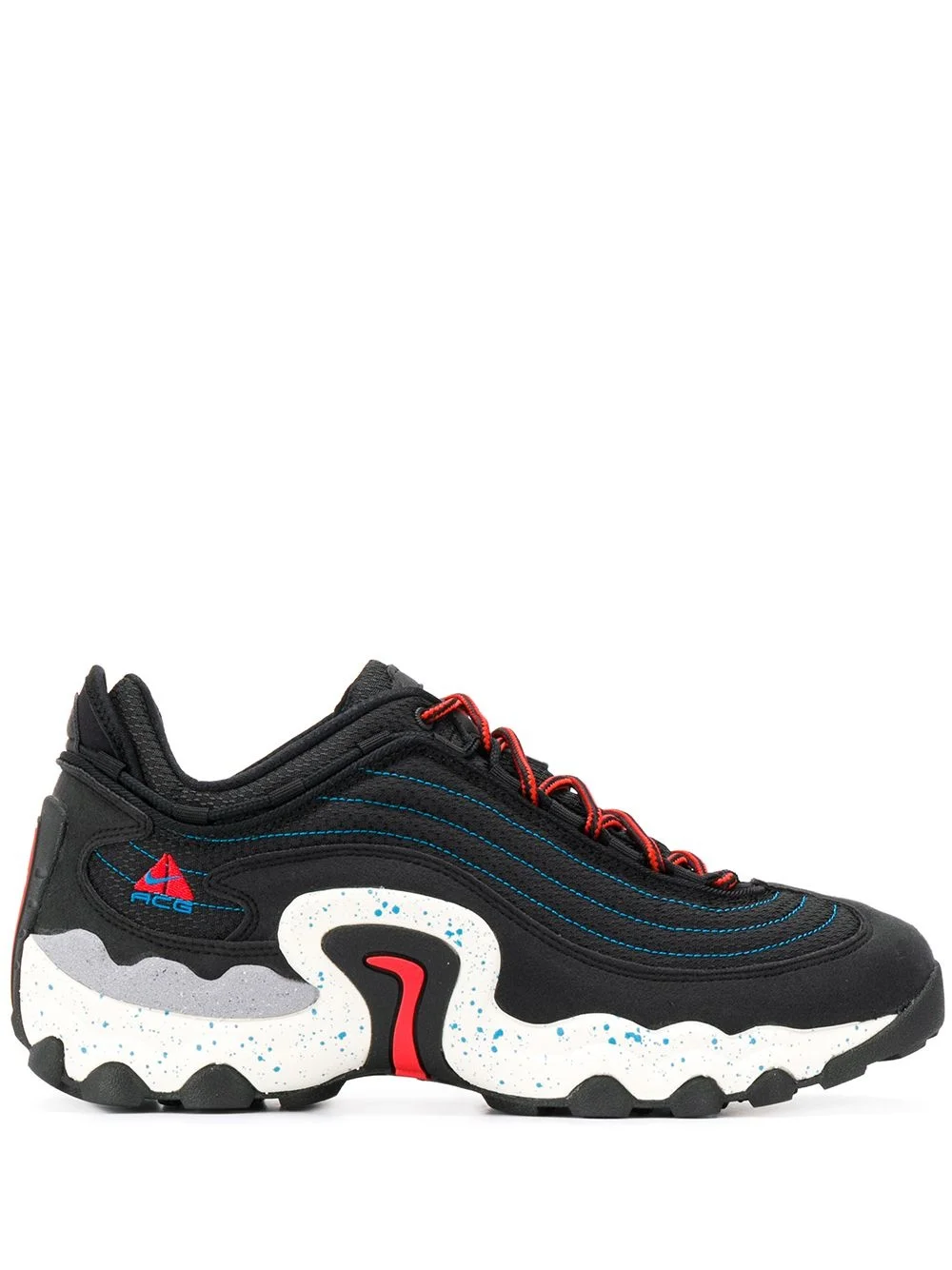 Air Skarn "Black" Highlights - Black acg air skarn low-top sneakers from nike featuring a logo patch at the tongue, a branded heel counter, contrast stitching, a rubber sole, a lace-up front fastening, a round toe and contrasting laces. Imported Composition Outer: Polyester 100% Lining: Polyester 100% Sole: Rubber 100% SIZE & FIT Measurement HEEL 1.77 in(4.5 cm) Sole height 1.18 in(3 cm)