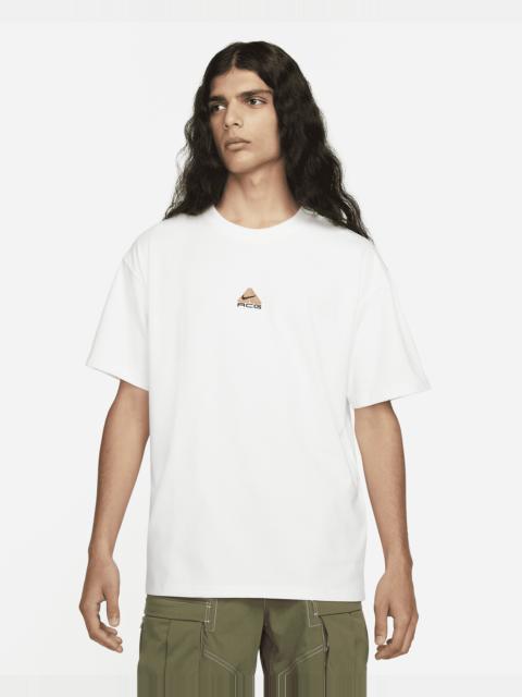 Breathe in that fresh air with this spacious, soft tee. It feels like a classic, with a slightly baggy fit. And when you’re out enjoying the great outdoors, the lung-shaped graphic reminds you to stop, breathe and take in the scenery. This product is made with 100% sustainable materials, using a blend of both recycled polyester and organic cotton fibers. The blend is at least 10% recycled fibers or at least 10% organic cotton fibers. Benefits - Lightweight fabric moves sweat away from your skin for quicker evaporation, helping you stay dry and comfortable. - Jersey fabric has a soft, smooth feel. - Embroidered detail at the chest and woven loop label capture the spirit of ACG. Product Details - Loose fit for a roomy feel - 63% recycled polyester/37% organic cotton - Machine wash - Imported - Shown: Black/Light Smoke Grey/Summit White - Style: DQ1815-011 SIZE & FIT Model is wearing size M and is 5'10"178cm Big & Tall model is wearing size 2XL and is 6'3"191cm Loose fit: roomy and relaxed