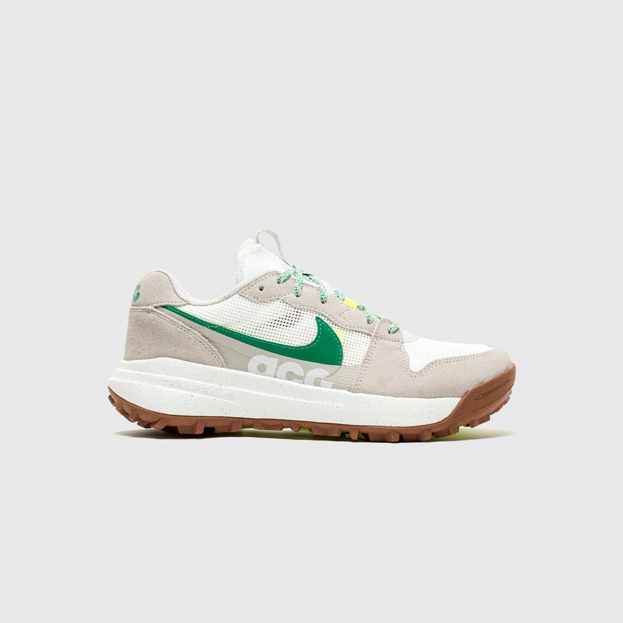 - DM8019 003 - Lt Iron Ore/Malachite-Summit White-Volt - A brand new ACG lifestyle model that contains elements resemblant of models from ACG's past - Lt iron ore suede upper with summit white loose mesh toe box and side panels - Summit white loose mesh tongue with light iron ore cloth pull tab and "ACG Triangle" branding - Pine green leather swoosh - TRAILFRAME foam midsole - Gum rubber outsole - Lt iron ore & pine green speckled laces