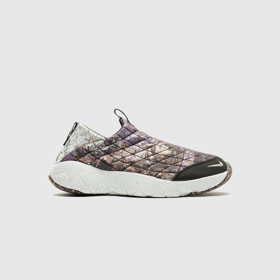 - DQ4450 200 - DK Driftwood/Canyon Purple-LT Iron Ore - Brand new version of the ACG Moc, which was the official shoe of Team USA in the past Olympics - All over print puft nylon upper done in a grid pattern with anthracite nubuck toe cap & embroidered swoosh - ACG pull tab and "Made On Earth" heel pull tab - Foldable heel panel to convert into a mule - RE-Grind foam midsole - RE-Grind rubble outsole