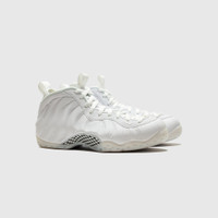 - HJ5195 100 - White/White - A proper retelling of 90s sneaker history would be incomplete without highlighting the Nike Air Foamposite One - White foamposite upper - White leather eye stays with an embroidered mini swoosh - White mesh bootie with a White and Black royal “1 Cent” TPU logo - White canvas heel pull tab with embroidered "1 Cent" logo - Carbon fiber-inspired midfoot plate - Translucent rubber outsole