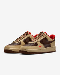 Comfortable, durable and timeless—it’s number 1 for a reason. This version of the iconic AF1 is all about the details: Quilted lining, debossed suede and soft, genuine leather. Of course, we kept the same durable '80s construction and Nike Air cushioning for that legendary AF1 style and comfort. Benefits - Stitched overlays on the upper add heritage style, durability and support. - Originally designed for performance hoops, Nike Air cushioning delivers lasting comfort. - Low-cut, padded collar looks sleek and feels great. - Rubber sole has a full cupsole stitch for exceptional durability. Product Details - Shown: Light British Tan/Sesame/Picante Red/Cacao Wow - Style: HQ3447-222