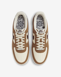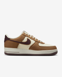 These AF1s are going back to school, and they just won "Best Dressed." Layers of canvas and synthetic leather create a vintage, varsity-inspired aesthetic. Don't forget to leave your mark: The sockliner graphics are inspired by school yearbooks—and we already signed it. Benefits - Durable upper with stitched overlays ages to soft perfection. - Originally designed for performance hoops, the Nike Air cushioning adds lightweight, all-day comfort. - Padded, low-cut collar looks sleek and feels great. Product Details - Foam midsole - Rubber outsole - Shown: Light British Tan/Coconut Milk/Gum Dark Brown/Burgundy Crush - Style: FQ8713-200