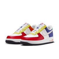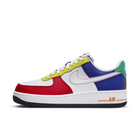 Why should kids have all the fun? Keep playtime in every step with these colorful kicks. Crossing hardwood comfort with off-court flair, this hoops original puts a fun spin on everything you know best about the AF1. Era-echoing '80s construction pairs with durable leather in bold colors to bring you nothing-but-net style. Benefits - From tough stitching to pristine materials to cupsole design, these kicks deliver durable style that's smoother than backboard glass. - Originally designed for performance hoops, Nike Air cushioning delivers lasting comfort. - Low-cut, padded collar looks sleek and feels comfortable. - Rubber outsole with heritage hoops pivot circles adds traction and durability. Product Details - Foam in midsole - Perforations on toe - Shown: University Red/Deep Royal Blue/Opti Yellow/White - Style: FN6840-657