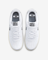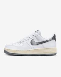 50 years after the birth of the genre, hip hop is still influencing streetwear. Nike shoes have always been an integral part of this culture—both influencing and being influenced by iconic musicians, artists and fans. Celebrate half a century of art and culture with platinum and gold records on your soles and metallic gray details on the upper to match. Lace up and get spinning. More Benefits - Leather in the upper ages to soft perfection. - Originally designed for performance hoops, the Nike Air cushioning adds lasting comfort. Product Details - Padded collar - Foam midsole - Perforations on toe - Rubber sole - Shown: White/Beach/White/Smoke Grey - Style: DV7183-100