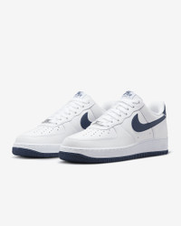 Comfortable, durable and timeless—it’s number 1 for a reason. The ‘80s construction pairs with classic colors for style that tracks whether you’re on court or on the go. Benefits - Leather upper softens and gains vintage character with wear. - Originally designed for performance hoops, the Nike Air cushioning adds all-day comfort. - Padded, low-cut collar looks sleek and feels great. Product Details - Perforations on the toe - Foam midsole - Rubber outsole - Shown: White/White/Midnight Navy - Style: FJ4146-104