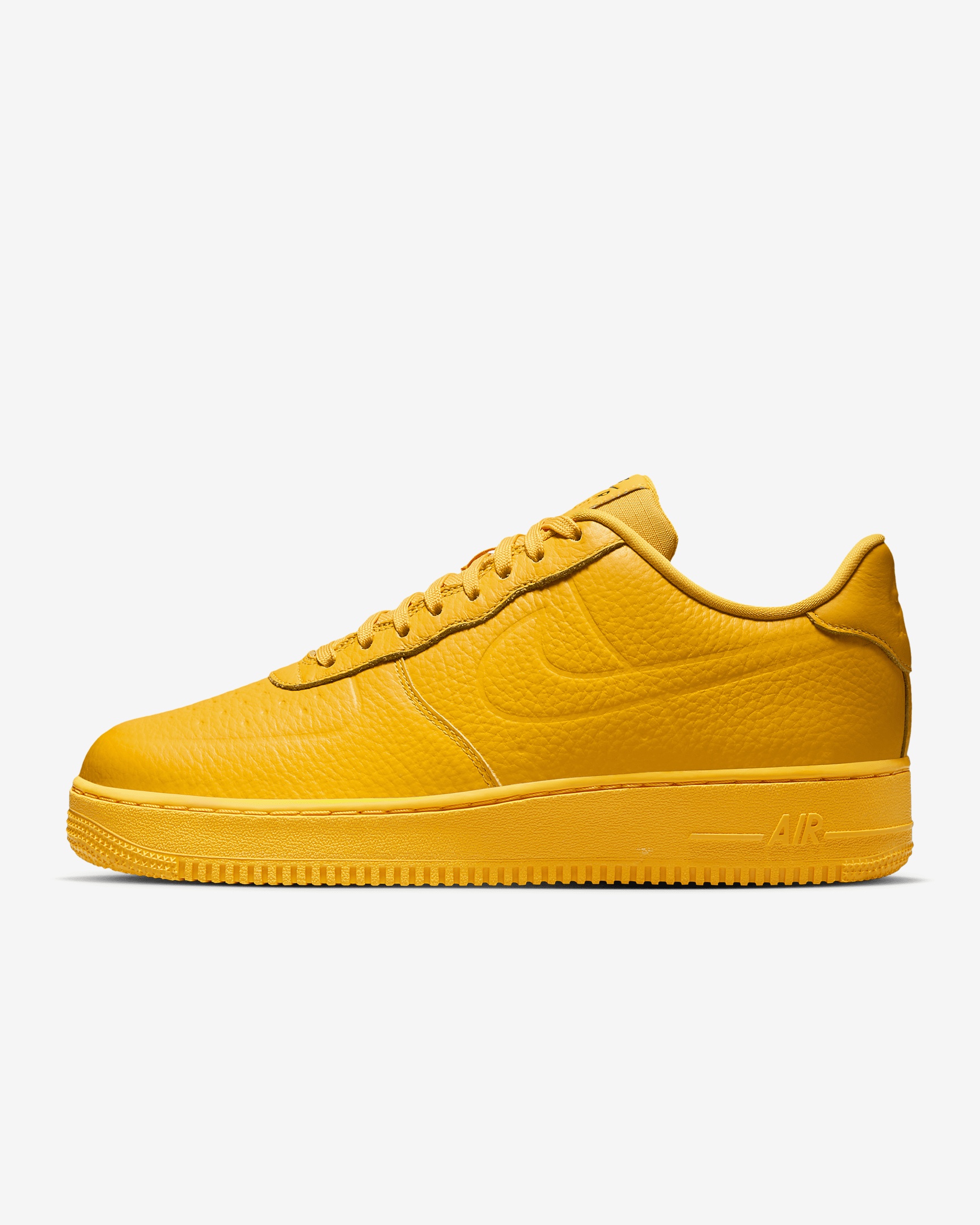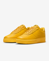 The radiance lives on in the Air Force 1 ’07 Pro-Tech—the basketball original that puts a fresh spin on what you know best. Monochromatic from top to bottom, this version uses waterproof materials so you can step out in style no matter the weather. Benefits - Leather upper with stitched overlays ages to soft perfection. - Originally designed for performance hoops, Nike Air technology adds lightweight cushioning. - Padded, low-cut collar feels great and looks sleek. - Rubber sole gives you durable traction. Product Details - Foam midsole - Shown: University Gold/Summit White/Black/University Gold - Style: FB8875-700