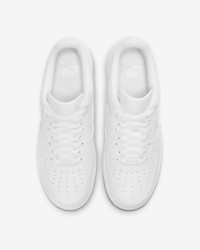 The radiance lives on in the Nike Air Force 1 ’07, the b-ball OG that puts a fresh spin on what you know best: crisp leather, clean colorways and the perfect amount of flash to make you shine. This clean, pure white finish adds the gum sole contrast for a fresh, versatile look with just the right amount of pop. Benefits - Stitched leather overlays on the upper add heritage style, durability and support. - Originally designed for performance hoops, Nike Air cushioning adds lightweight, all-day comfort. - Low-cut silhouette adds a clean, streamlined look. - Mesh-lined padded collar and tongue feels soft and comfortable. - Gum outsole features the iconic pivot circle tread pattern for time-tested traction and durability. Product Details - Foam midsole - Perforations on the toe - Classic "Nike Air" logo on the heel tab - Shown: White/Gum Light Brown/White - Style: DJ2739-100