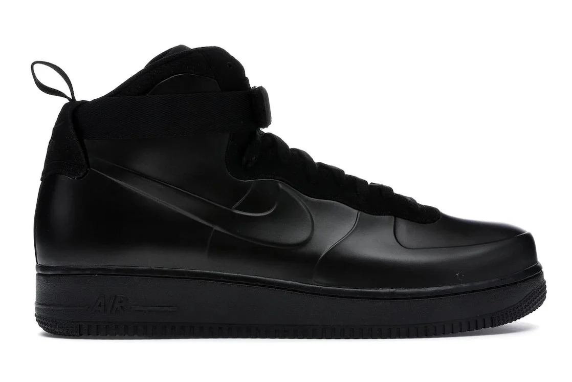 The "Nike Air Force 1 Air Foamposite Cup Triple Black" comes in an all-black hue. With a midsole made entirely of black Foamposite material and an all-black Foamposite upper, this Air Force 1 model by Nike has an AIR bubble present in the midsole composition, not visible on the sole. The high model also features a Velcro clasp on the ankle, a rounded toe, black shoe laces and a linear pattern on the outsole. The Nike Air Force 1 Air Foamposite Cup Triple Black launched on February 3rd, 2018. At the time, it was set to reatil for $200. - Style AH6771-001 - Colorway Black/Black-Black - Retail Price 200 - Release Date 2018-02-03 - Featured false - Product Line Nike Air Force