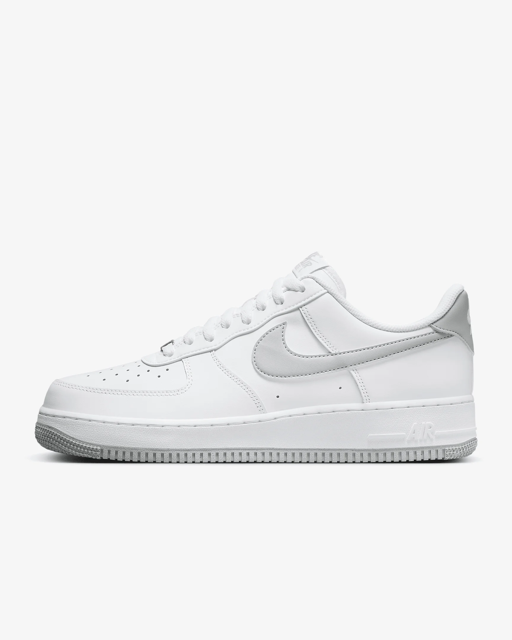 Comfortable, durable and timeless—it’s number 1 for a reason. The ‘80s construction pairs with classic colors for style that tracks whether you’re on court or on the go. Benefits - Leather upper softens and gains vintage character with wear. - Originally designed for performance hoops, the Nike Air cushioning adds all-day comfort. - Padded, low-cut collar looks sleek and feels great. Product Details - Perforations on the toe - Foam midsole - Rubber outsole - Shown: White/White/Light Smoke Grey - Style: FJ4146-100