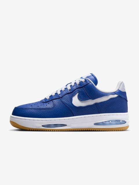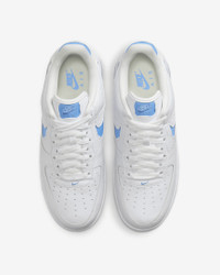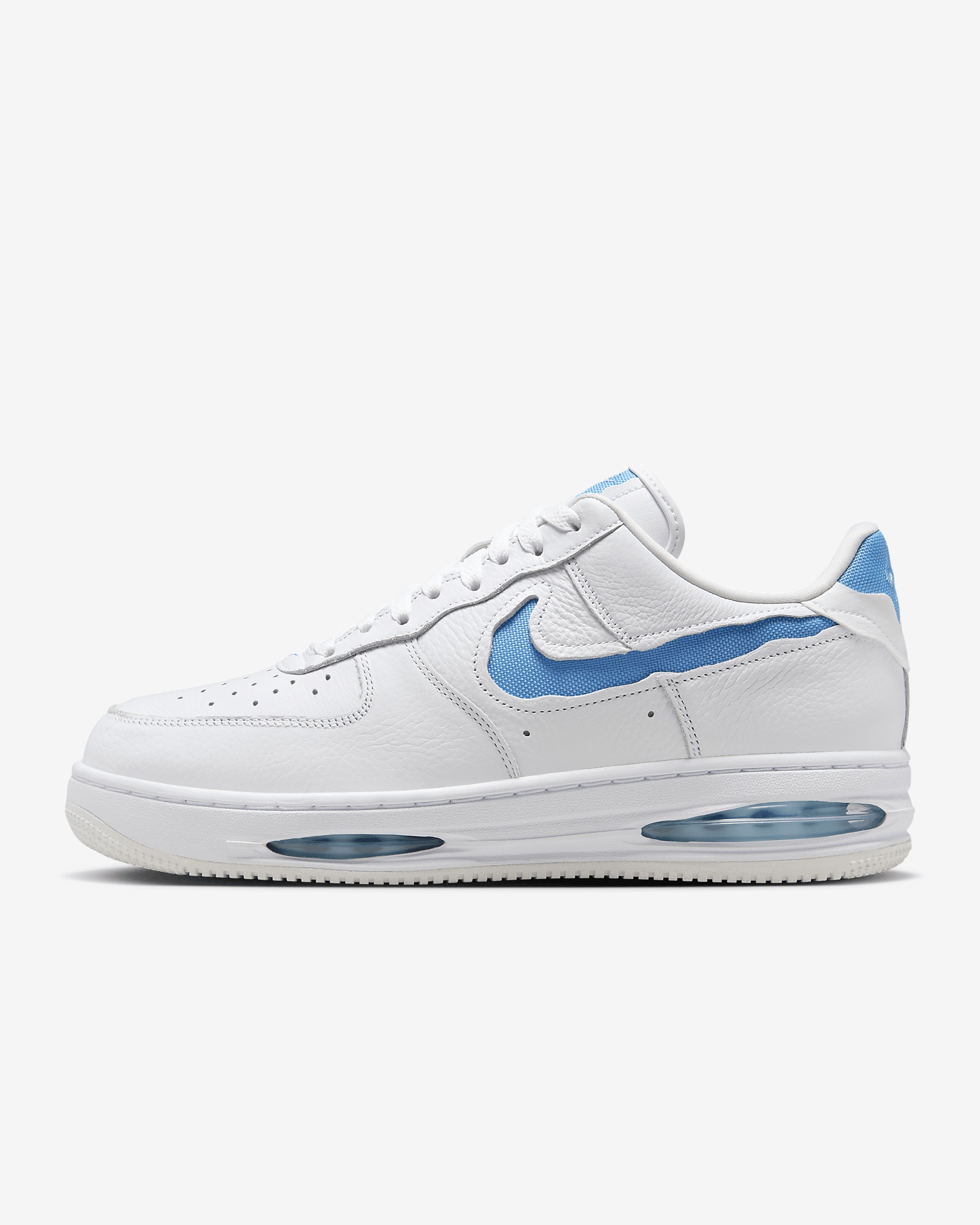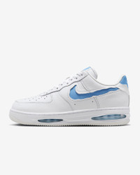 Comfortable, durable and timeless—it’s number 1 for a reason. Cutaway details expose a premium textile Swoosh logo and full-length Air units in the outsole, revealing the Air Force 1 in a new way. The classic ‘80s construction pairs with bold details for style that tracks whether you’re on court or on the go. Benefits - Leather upper with textile accents creates a classic look that’s built to last. - Originally designed for performance hoops, visible Air cushioning delivers lasting comfort. - Rubber outsole with heritage hoops pivot circles adds traction and durability. - Padded, low-cut collar looks sleek and feels great. Product Details - Shown: White/Summit White/University Blue - Style: HF3630-101