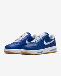 Comfortable, durable and timeless—it’s number 1 for a reason. Cutaway details expose a premium textile Swoosh logo and full-length Air units in the outsole, revealing the Air Force 1 in a new way. The classic ‘80s construction pairs with bold details for style that tracks whether you’re on court or on the go. Benefits - Leather upper with textile accents creates a classic look that’s built to last. - Originally designed for performance hoops, visible Air cushioning delivers lasting comfort. - Rubber outsole with heritage hoops pivot circles adds traction and durability. - Padded, low-cut collar looks sleek and feels great. Product Details - Shown: Team Royal/Aquarius Blue/Gum Yellow/White - Style: HF3630-400
