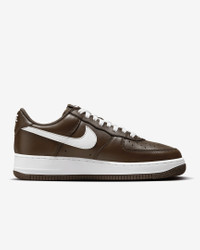 A scorching edition to your AF1 collection, this head-turning take on the hoops-to-street icon brings the heat. Contrasting colors add a bold look to any 'fit, while Nike Air cushioning puts the cherry on the bottom. Benefits - From tough stitching to pristine materials to the cupsole design, it delivers durable style that’s smoother than backboard glass. - Leather upper ages to soft perfection. - Originally designed for performance hoops, Nike Air cushioning delivers lasting comfort. - Rubber outsole with heritage hoops pivot circles adds traction and durability. - Low-cut, padded collar looks sleek and feels great. Product Details - Shown: Chocolate/White - Style: FD7039-200