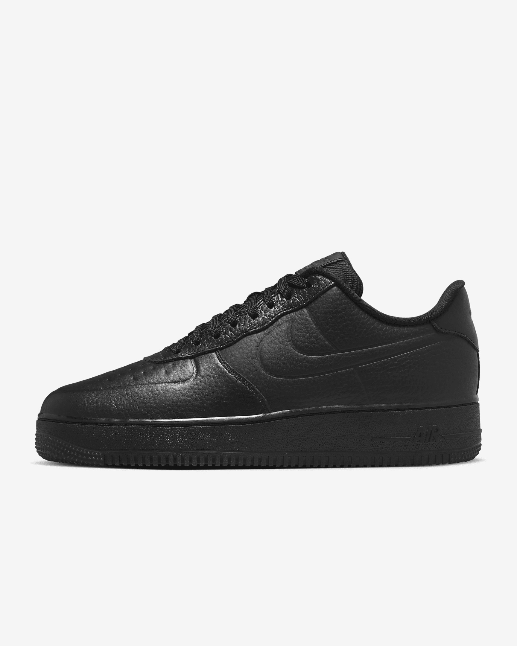 The radiance lives on in the Air Force 1 ’07 Pro-Tech—the basketball original that puts a fresh spin on what you know best. Monochromatic from top to bottom, this version uses waterproof materials so you can step out in style no matter the weather. Benefits - Leather upper with stitched overlays ages to soft perfection. - Originally designed for performance hoops, Nike Air technology adds lightweight cushioning. - Padded, low-cut collar feels great and looks sleek. - Rubber sole gives you durable traction. Product Details - Foam midsole - Shown: Black/Clear/Black - Style: FB8875-001