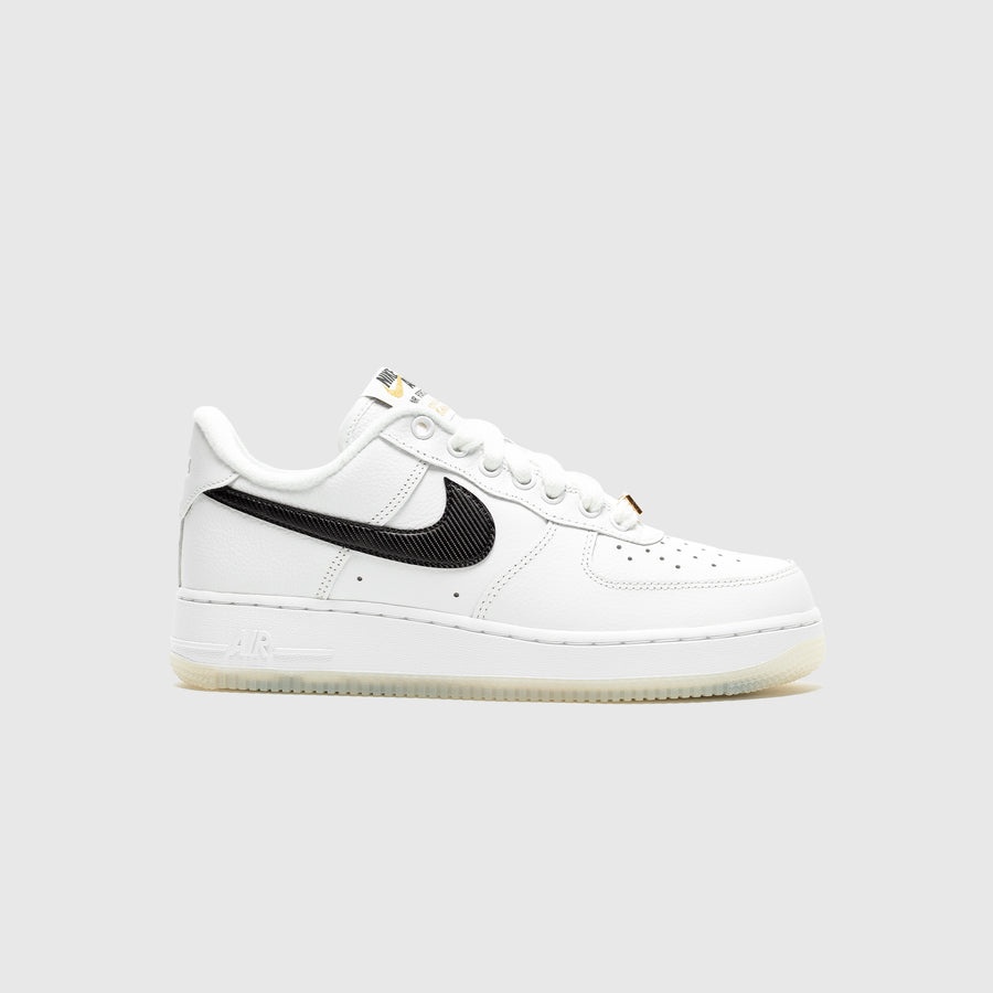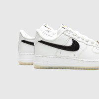 - DX2305 100 - White/Black-Metallic Gold-Coconut Milk - Nike pays homage to Hip-Hop and it's birthplace with a special colorway on one of their most iconic models which also has a special connection to New York - White leather upper - White leather tongue with "NIKE AIR FORCE 1 ANNIVERSARY EDITION" tongue tag - Black textured leather swoosh to represent the records used by DJ's to create the Hip-Hop sound - White leather heel cap with embossed old english font "AIR FORCE ONE" branding - White rubber midsole with encapsulated "AIR" unit in the heel - Translucent clear rubber outsole with "BRONX ORIGINS" graphic - Record graphic on the insole - Double layered flat fat laces reminiscent of the laces used by B-Boys to breakdance - Golden "1973" & " 1982" lace dubraes to represent the birth years of Hip-Hop & of the Air Force One