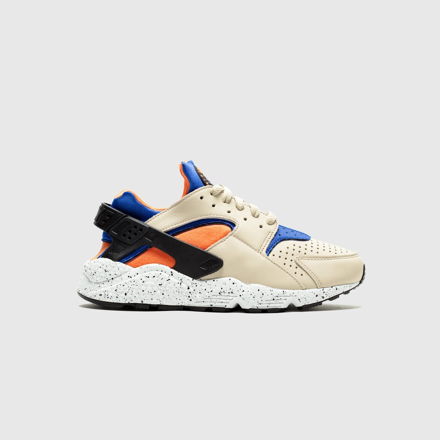 - DD1068 200 - Rattan/Hyper Royal-Bright Mandarin-Black - One of Tinker Hatfield's most beloved creations with Nike brought back in a classic Mowabb colorway - Rattan tumbled leather upper - Hyper royal & bright mandarin neoprene tongue / inner bootie with "NIKE AIR HUARACHE" tongue tag - Black tpu heel wrap for added support and security - Speckled cement grey foam midsole for the added ACG aesthetic - Black rubber outsole - Classic flat laces