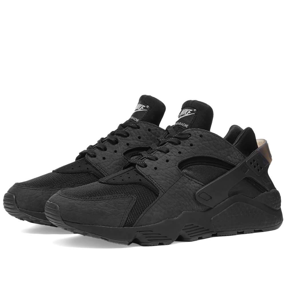 Nike’s Air Huarache debuted in 1991, designed by Tinker Hatfield as a bold, lightweight runner with comfort at its core. Today, things are much the same, only this version is much more subtle. The form-fitting neoprene sock — famously inspired by water-skiing boots — supportive heel cage and Air-cushioned sole are just as we know and love, only everything is coloured in black and there are tumbled leather overlays detailed across the uppers. There’s a nod to the shoe’s debut advertisement campaign, too, with “HAVE YOU HUGGED YOUR FOOT TODAY?” printed on the outer sole. - Textile Uppers - Leather Overlays - Sock-Like Construction - Air Cushioning - Rubber Outsole - Style Code: DJ6890-001