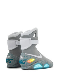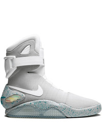 Air Mag "Back To The Future" sneakers Nearly fifty years after its conception in 1971, Nike’s iconic Swoosh logo remains unchanged, showcasing a prevalent and pioneering symbol for the brand. Perhaps the most sought-after sneaker of all time, the Nike Mag from Back to the Future Part II was released in 2011 via limited eBay auctions to support the Michael J. Fox Foundation. The pair feature a round toe, a flat rubber sole, a signature Nike swoosh, a mid-calf length, a branded ankle strap and light-up detailing. Highlights - Jetstream/white/blue - Signature swoosh logo detail - Ankle strap - Logo print to the front - Round toe - Flat rubber sole - These styles are supplied by a premium sneaker marketplace. stocking only the most sought-after footwear, they source and curate some of the most hard to find sneakers from around the world. Imported Composition Other fibres 100%