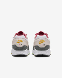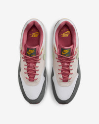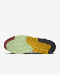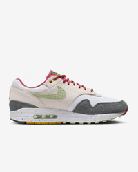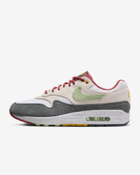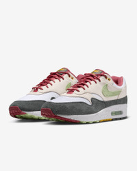 Meet the leader of the pack. Walking on clouds above the noise, the Air Max 1 blends timeless design with cushioned comfort. Smooth leather and soft suede updates this long-standing icon with visual texture. With a fast-paced look, it's no wonder these kicks have reigned supreme since 1987. Benefits - Upper combines textile, suede and leather for durability that's made for everyday wear. - Originally designed for performance running, visible Max Air unit provides all-day cushioning. - Rubber outsole gives you traction and durability. - Padded, low-cut collar looks sleek and feels comfortable. Product Details - Shown: Light Soft Pink/Anthracite/Adobe/Vapor Green - Style: FZ4133-640