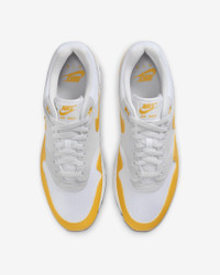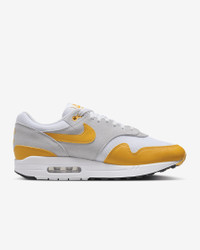 Meet the leader of the pack. Walking on clouds above the noise, the Air Max 1 blends timeless design with cushioned comfort. Sporting a Max Air unit and mixed materials, this icon hit the scene in ‘87 and continues to be the soul of the franchise today. Benefits - Upper mixes synthetic leather, suede and mesh for a layered look built to last. - Foam midsole with a Max Air unit in the heel provides lightweight cushioning. - Rubber Waffle outsole adds durable traction and heritage style. - Padded, low-cut collar feels soft and comfortable. Product Details - Shown: White/Pure Platinum/Black/University Gold - Style: FZ5808-100