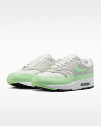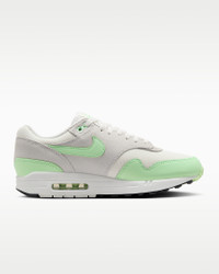 Meet the leader of the pack. Walking on clouds above the noise, the Air Max 1 blends timeless design with cushioned comfort. Sporting a Max Air unit and mixed materials, this icon hit the scene in ‘87 and continues to be the soul of the franchise today. Benefits - Upper mixes synthetic leather, suede and mesh for a layered look built to last. - Foam midsole with a Max Air unit in the heel provides lightweight cushioning. - Rubber Waffle outsole adds durable traction and heritage style. - Padded, low-cut collar feels soft and comfortable. Product Details - Shown: Summit White/Photon Dust/Black/Vapor Green - Style: FZ5808-107
