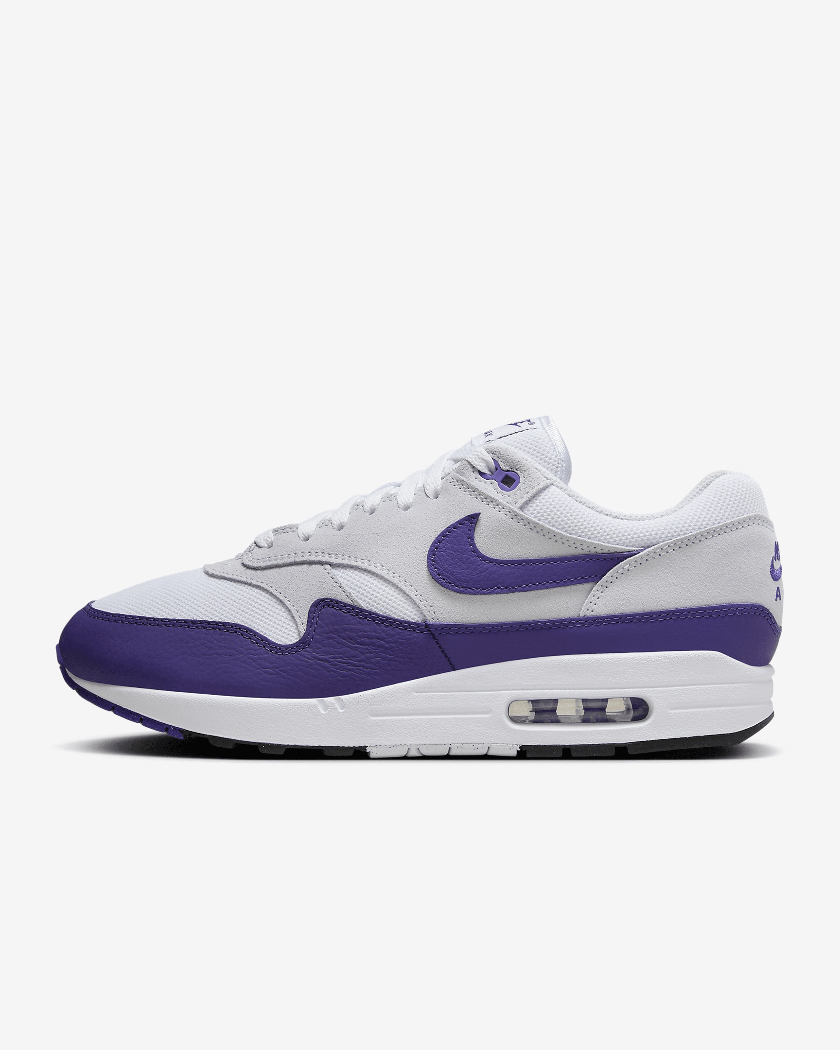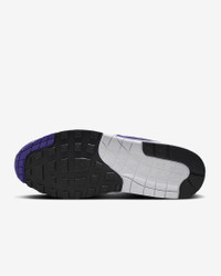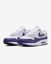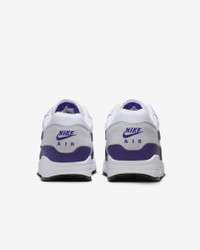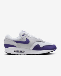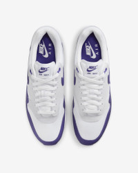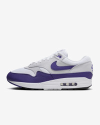 Laidback and easy to style, this Air Max 1 delivers everything from Parisian flair (the original was inspired by French architecture) to seasonally-perfect colors to groundbreaking comfort. Premium leather adorns the wavy mudguard and Swoosh logo, while soft suede and airy underlays nod to the original from '87. It's timeless for a reason. Benefits - Leather, textile and mesh combine for a durable construction that's breathable and comfortable to wear all day. - Originally designed for running, the foam midsole and Max Air unit provides lightweight cushioning. - Rubber outsole gives you traction and durability. Product Details - Shown: White/Football Grey/Black/Field Purple - Style: DZ4549-101