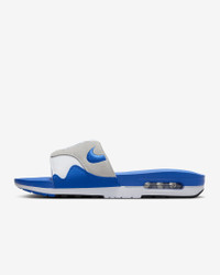 The first shoe to reveal Nike Air to the world gets transformed into a slide. Keeping the tried-and-true cushioning and wavy design lines, this warm-weather addition to the Air Max family is as easy to slip on as it is to style. Benefits - Plush and comfortable, Max Air cushioning has just the right amount of support. - Padded strap combines suede and mesh for a luxe look that is soft and breathable. - Waffle outsole grips surfaces, wherever your adventures take you. Product Details - Foam midsole - Rubber outsole - Shown: White/Black/Light Neutral Grey/Royal Blue - Style: FJ4007-100