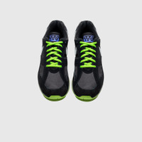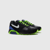 - FZ3058 001 - Black/White-Action Green-Persian Violet - Bruce Kilgore's 1991 design of the Air Max 180 returns with a striking new "Joker" colorway - Black mesh upper - Black suede overlays - Black mesh tongue with Persian violet "180 AIR" branding - White leather swoosh - Black suede heel with Action green "NIKE AIR" embroidery - Black midsole with 180-degree max air unit - Black and Action green rubber outsole