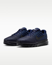 The Nike Air Max 2017 delivers the plush sensation you love with a full-length Max Air unit. The upper is seamlessly constructed with zonal support and ventilation while molded foam wraps your mid-foot and heel for secure comfort. Benefits - Flymesh and synthetic upper provides breathable support. - Full-length Max Air unit delivers enhanced cushioning. - Foam molded into the midfoot wraps the arch for a snug fit. - Sculpted Cushlon midsole combines plush cushioning with springy resilience for impact absorption. Product Details - Not intended for use as Personal Protective Equipment (PPE) - Shown: Binary Blue/Obsidian/Black - Style: 849559-405