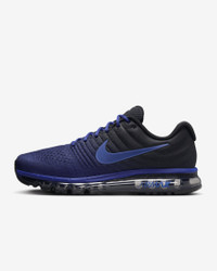 The Nike Air Max 2017 delivers the plush sensation you love with a full-length Max Air unit. The upper is seamlessly constructed with zonal support and ventilation while molded foam wraps your mid-foot and heel for secure comfort. Benefits - Flymesh and synthetic upper provides breathable support. - Full-length Max Air unit delivers enhanced cushioning. - Foam molded into the midfoot wraps the arch for a snug fit. - Sculpted Cushlon midsole combines plush cushioning with springy resilience for impact absorption. Product Details - Not intended for use as Personal Protective Equipment (PPE) - Shown: Deep Royal Blue/Black/Hyper Cobalt - Style: 849559-401