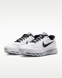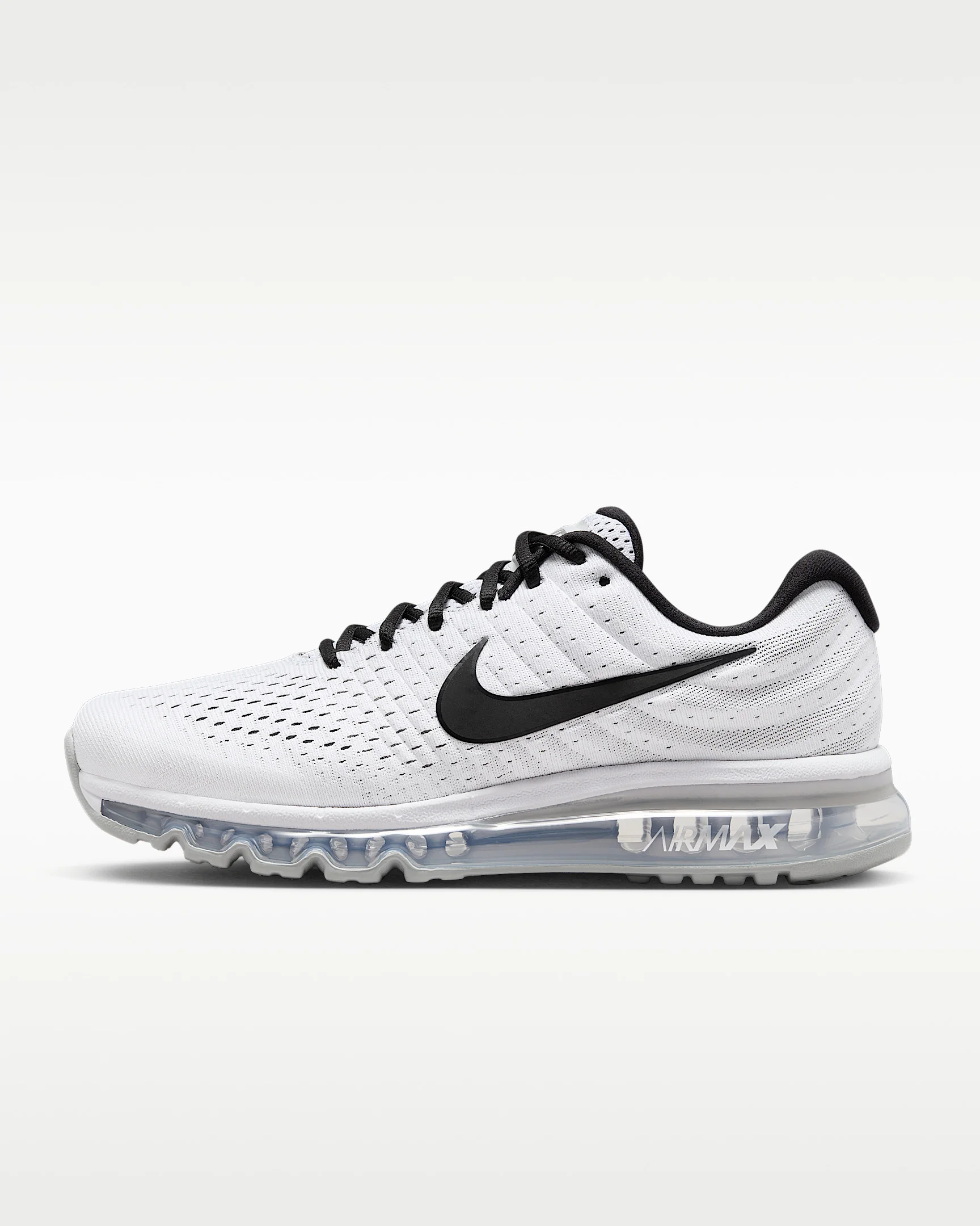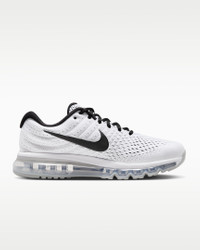 The Nike Air Max 2017 delivers the plush sensation you love with a full-length Max Air unit. The upper is seamlessly constructed with zonal support and ventilation while molded foam wraps your mid-foot and heel for secure comfort. Benefits - Flymesh and synthetic upper provides breathable support. - Full-length Max Air unit delivers enhanced cushioning. - Foam molded into the midfoot wraps the arch for a snug fit. - Sculpted Cushlon midsole combines plush cushioning with springy resilience for impact absorption. Product Details - Not intended for use as Personal Protective Equipment (PPE) - Shown: White/Pure Platinum/Black - Style: 849559-100