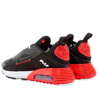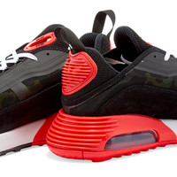For its 30th anniversary, Nike reimagines the DNA of the Air Max 90, modernising it while retaining all the original charm that continues to see it heralded as a street favourite. Dubbed the Air Max 2090, it has beefed-up exposed Air cushioning, a stylised heart-shaped plaque on the heel and a lightweight textile construction. This pair, though subtle, harks back to the 2013 collab with Japanese retailer Atmos. The all-black, semi-transparent textile uppers conceal a duck camo pattern and are joined by the iconic infrared hues that debuted on the OG model in 1990. - Textile Uppers - Heel Pull - Printed Branding - Foam Midsole - Max Air Cushioning - Rubber Outsole - Style Code: CU9174-600