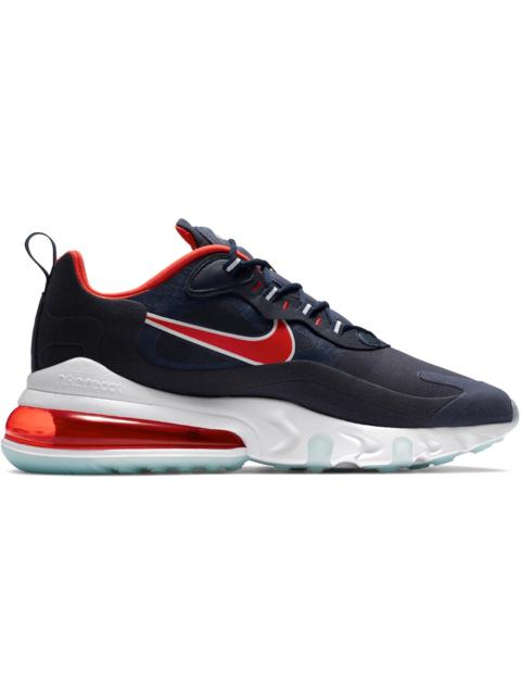 The Nike Air Max 270 React White Sky Blue is a performance shoe featuring 270-degree cushioning under the heel. This version of the Nike Air Max 270 React has a mostly white upper. White forms the base, while white overlays appear on the toe box forming the toe cap and running along the sides outlining the eyestays and the branding elements. The Nike swoosh appears on both sides in Sky Blue outlined in black, while a gray overlay runs down the sides from the heel to the toe in a curved line. The eyelets are made of black and Sky Blue fabric, while the tongue features Air Max 270 branding also in Sky Blue. Black overlays appear under the gray on the forefoot and around the heel, culminating in a black pull tab. There is also a gray overlay featuring a vertical Nike swoosh on the heel. What we like best about this sneaker are the Sky Blue accents, which make the shoe bright and perfect for spring. The Nike Air Max 270 React White Sky Blue was released on April 4, 2020, for $150. - Style CT1280-101 - Colorway White/Black/Grey/Sky Blue - Retail Price 150 - Release Date 2020-04-04 - Featured false - Product Line Nike Air Max