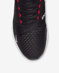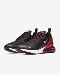 Nike's first lifestyle Air Max brings you style, comfort and big attitude in the Nike Air Max 270. The design draws inspiration from Air Max icons, showcasing Nike's greatest innovation with its large window and fresh array of colors. Benefits - The Max Air 270 unit delivers unrivaled, all-day comfort. - The sleek, running-inspired design roots you to everything Nike. - Woven and synthetic fabric on the upper provides a lightweight fit and airy feel. - Foam midsole feels soft and comfortable. - Stretchy inner sleeve and booty-like construction creates a personalized fit. - Rubber on the outsole adds traction and durability. Product Details - Mesh details for an airy feel - Synthetic and textile - 2-piece midsole - Shown: Black/University Red/Anthracite/White - Style: AH8050-022 SIZE & FIT Fits small; we recommend ordering a half size up
