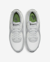 Designed to keep you having fun when the rain starts, the Air Max 90 delivers a waterproof take on the champion running shoe that helped define the ‘90s. Sure to be a coveted edition, your tried and true gets a GORE-TEX upper so you can make a splash without getting wet. Benefits - Waterproof GORE-TEX upper helps keep you dry so you can focus on the adventure. - Leather vamp adds durability and helps resist the elements. - Originally designed for performance running, visible Nike Air cushioning puts the history of comfort beneath your feet. - Waffle-inspired outsole delivers traction, durability and heritage style. - Padded, low-cut collar looks sleek and feels great. Product Details - Shown: Photon Dust/Grey Fog/Chlorophyll/Summit White - Style: DJ9779-003 SIZE & FIT Fits small; we recommend ordering a half size up