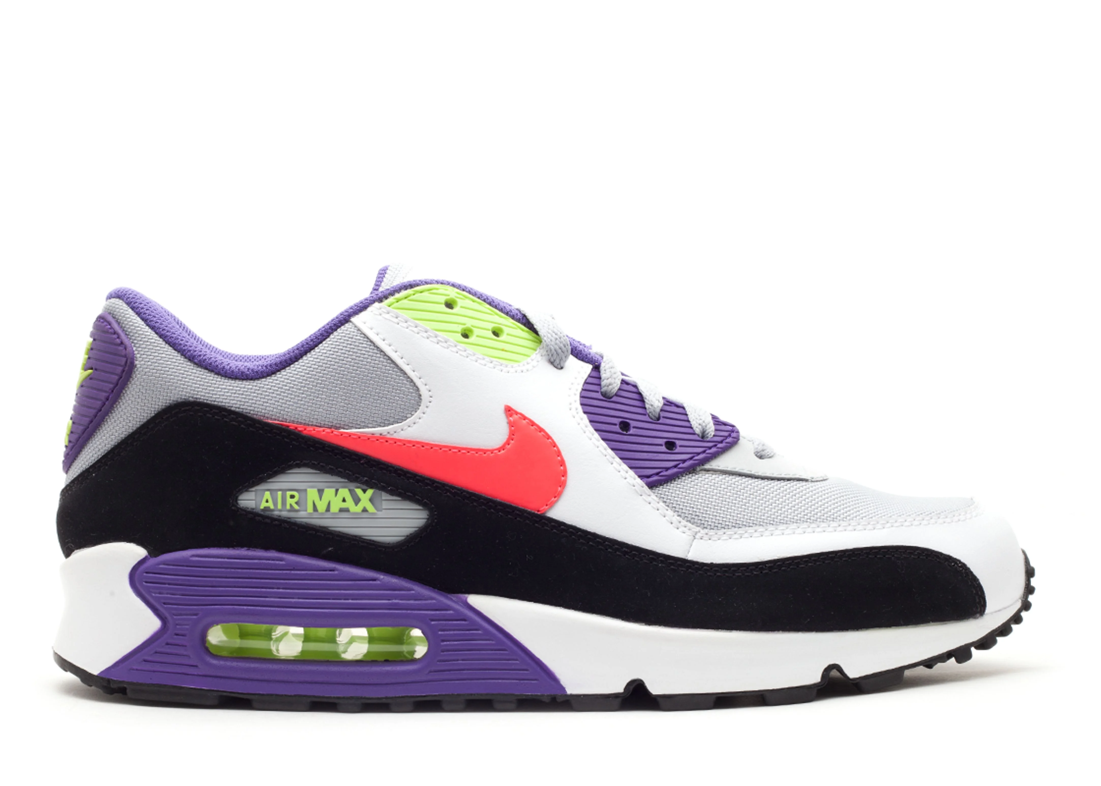 The Air Max 90 ‘I Am The Rules’ draws inspiration from a Foot Locker Europe ad campaign from 2010. The retro runner sports a grey mesh upper complemented by a white leather overlay and black suede mudguard. Vibrant pops of color come courtesy of a Solar Red Swoosh and molded eyelets in purple and Volt. The latter hues make a repeat appearance on the midsole wedge and Max Air unit within. SKU: 325018 024 Colorway: Wolf Grey/Solar Red-White-Black