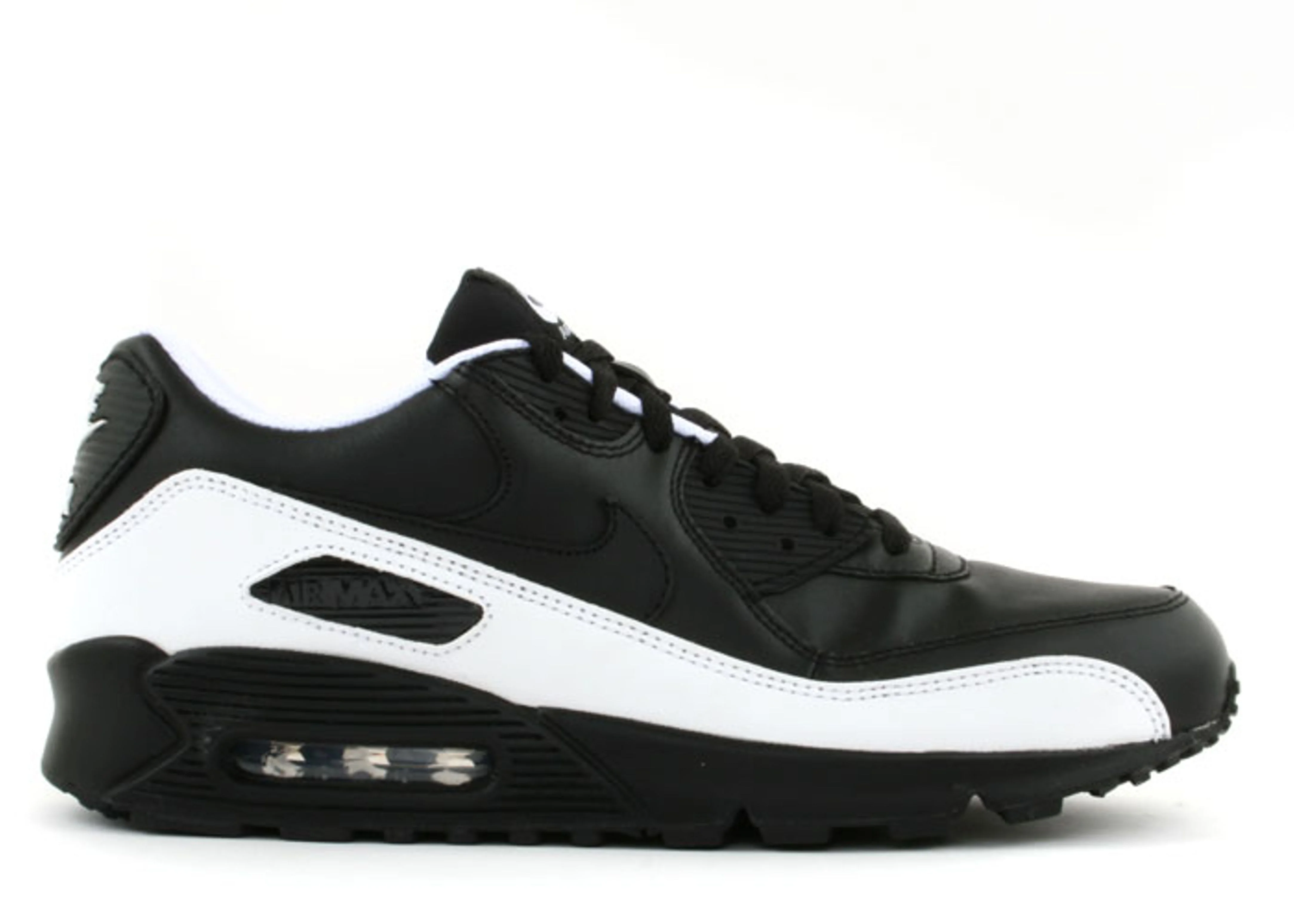 The Nike Air Max 90 Leather has a monochromatic upper reinforced with double stitching, stealthy Swoosh logos and grooved eyestays. Padding at the collar and tongue keep the feel plush from the moment you lace them up. An exposed Max Air pocket partners with a foam midsole for a soft feel underfoot. SKU: 302519 007 Colorway: Black/Black-White