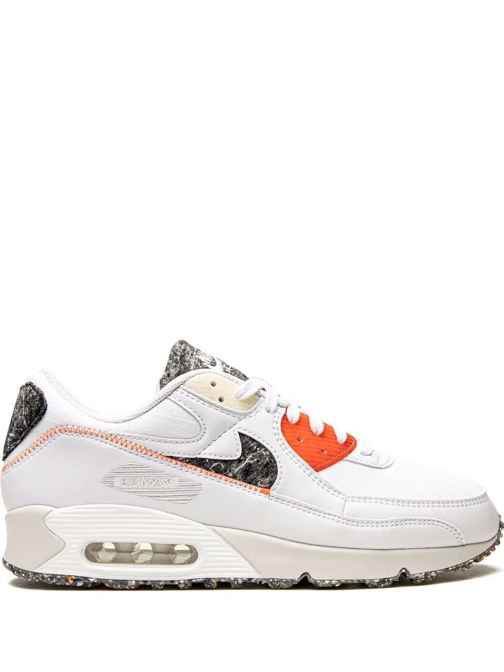 Air Max 90 low-top sneakers This version of the classic Air Max 90 is made with recycled wool - on the Swoosh, tongues, and heels. Their low-top design is dressed in a white, grey and red colour scheme and features a textile upper with leather overlays. Underneath, a rubber sole with Max Air cushioning adds comfort. Imported Composition Outer: Leather 100%, Fabric 100% Sole: Rubber 100% Lining: Fabric 100%