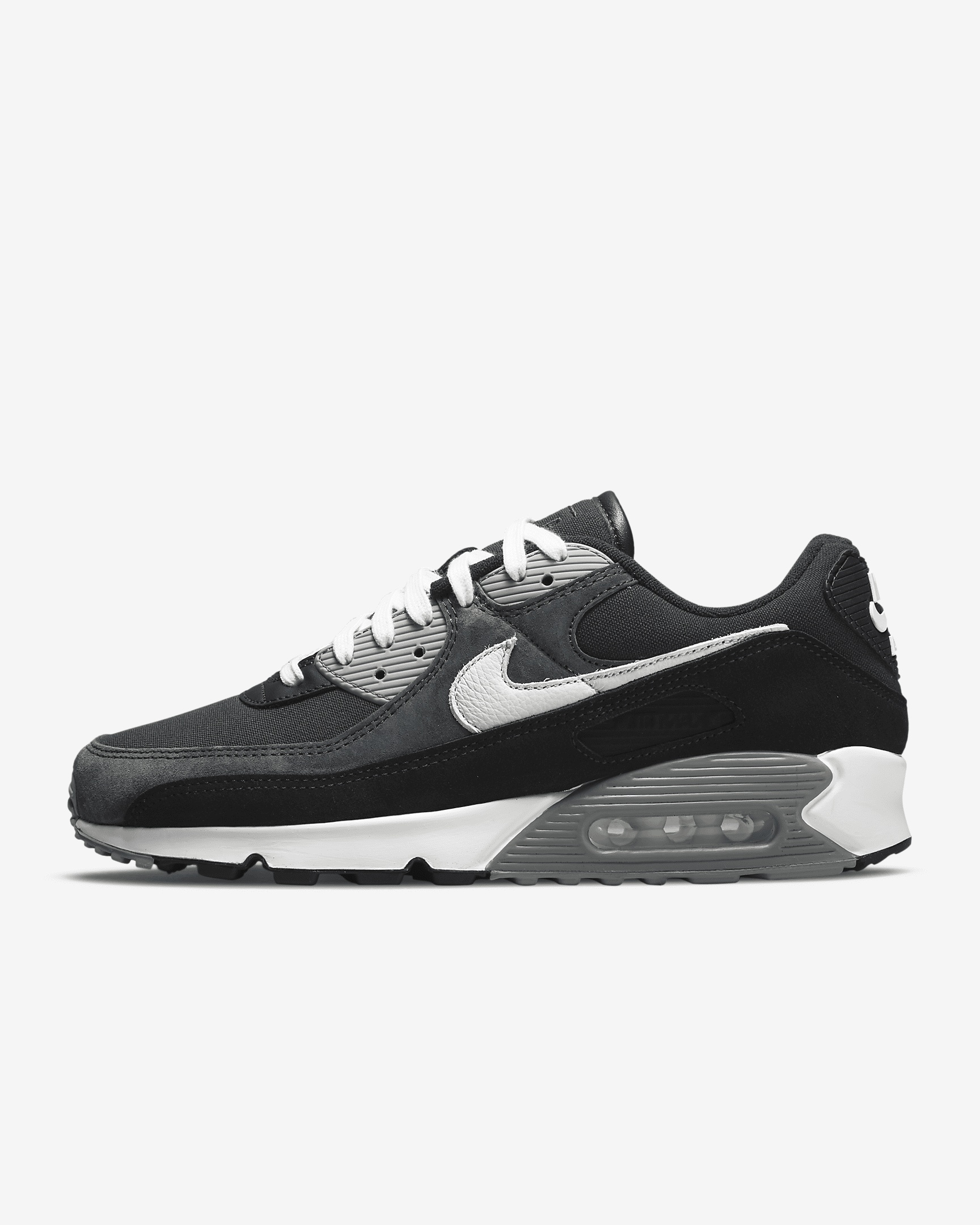 Nothing as fly, nothing as comfortable, nothing as proven—the Nike Air Max 90 Premium stays true to its roots with the iconic Waffle outsole, stitched overlays and classic TPU accents. Fresh colors give a modern look while Max Air cushioning adds comfort to your journey. Benefits - Originally designed for performance running, the Max Air unit in the heel adds unbelievable cushioning. - The low-top design combines with a padded collar for a sleek look that feels soft and comfortable. - The rubber Waffle outsole adds a heritage look, traction and durability. - The stitched overlays and TPU accents add durability, comfort and the iconic '90s look you love. Product Details - Foam midsole - Rubber Waffle outsole - Shown: Off Noir/Black/Particle Grey/Summit White - Style: DA1641-003