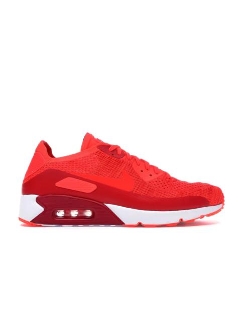 The Nike Air Max 90 Ultra Flyknit 2.0 Infrared is a variation of Nike Air Max 90 Ultra Flyknit sneakers appearing in white, Wolf Grey, and Bright Crimson color schemes. The 2.0 Infrared Nike Air Max 90 Ultra Flyknit features a predominantly Wolf Gray Flyknit upper constructed with Nike's Flyknit technology. The technology encourages the use of lightweight, breathable, and flexible yarns meant to ensure an adaptive fit. The Wolf Grey upper is contrasted with the white accents on the toe-box and the shoelaces that ensure a comfortable fit. The sneaker’s design also features a white rubber midsole for cushioning and support, and a black treaded outsole for traction. What our experts believe is the standout feature of the Nike Air Max 90 Ultra Flyknit 2.0 Infrared, which was launched on March 2nd, 2017 with a recommended retail price of $160, is its visible Nike Air Max units in midsole for an optimal cushioning and protection during wear. - Style 875943-100 - Colorway White/Wolf Grey-Bright Crimson - Retail Price 160 - Release Date 2017-03-02 - Featured false - Product Line Nike Air Max