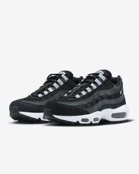 Taking inspiration from the human body and '90s track aesthetics, the Air Max 95 mixes unbelievable comfort with fast-paced style. The wavy side panels add natural flow to any outfit while visible Nike Air in the heel and forefoot delivers performance comfort. Benefits - Upper draws inspiration from the human body—the midsole represents the spine, graduated panels are the muscles and the laces are the shoe’s ribs. - Originally developed for performance running, visible Nike Air cushioning delivers all-day comfort. - Mesh is reinforced with leather and overlays for a highly breathable and durable design. - Flex grooves let your feet bend and move naturally. Product Details - Foam in the midsole - Rubber outsole - Shown: Black/Anthracite/White/Pure Platinum - Style: DM0011-009 SIZE & FIT Fits small; we recommend ordering a half size up