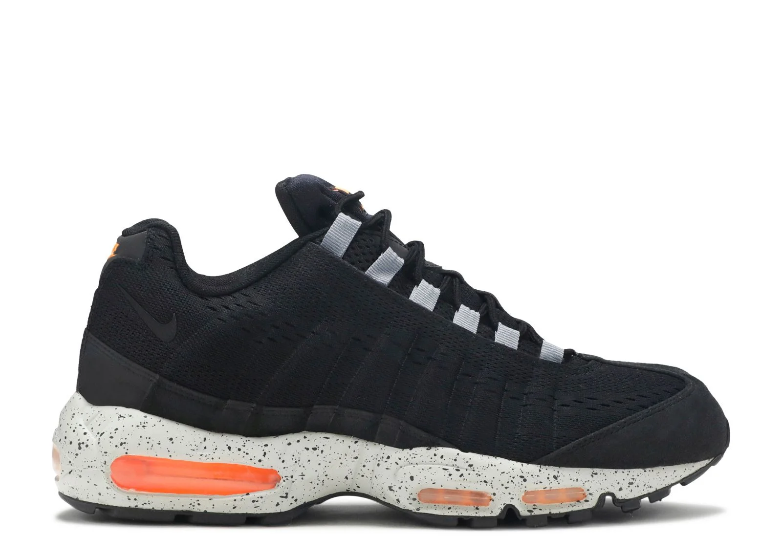 Dropping as part of Nike’s Engineered Mesh City Series from 2013, the Air Max 95 EM ‘Honolulu’ sports a monochromatic black upper built with breathable engineered mesh. The lightweight construction sits atop a speckled grey midsole, housing visible Air Max units tinted in bright orange. Additional pops of orange appear on the Nike branding elements at the tongue and heel panel. SKU: 554971 080 Colorway: Black/Blk-Bright Ctrs-Strt Gry