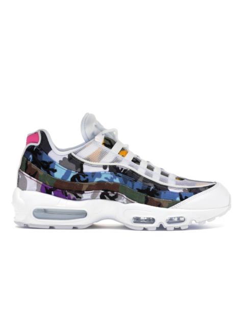 These Nike Air Max 95 ERDL Party Blacks look like they collaborated with a case of Four Loko. All jokes aside, this unique Air Max 95 carries a "What The" Air Max vibe with various shades of camo running across the side panels of the shoe. Other than that, black makes up the majority of this colorway. This pair, along with a white pair, released in August 2018 for $190. - Style AR4473-001 - Colorway Black/Multi-Color - Retail Price 190 - Release Date 2018-08-04 - Featured false - Product Line Nike Air Max