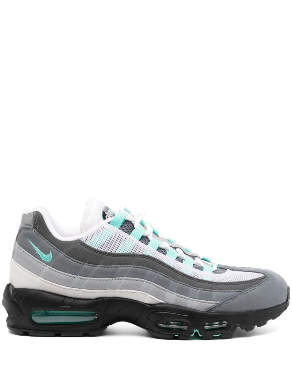 Air Max 95 sneakers Highlights - Cool grey/tiffany blue/white - Signature swoosh logo detail - Contrasting panel detail - Round toe - Front lace-up fastening - Logo patch at the tongue - Branded insole - Rubber sole with max air cushioning - Original box included. Imported Composition Other fibres 100% SIZE & FIT Measurement HEEL 1.77 in(4.5 cm) HEIGHT 3.54 in(9 cm) Sole height 0.59 in(1.5 cm)