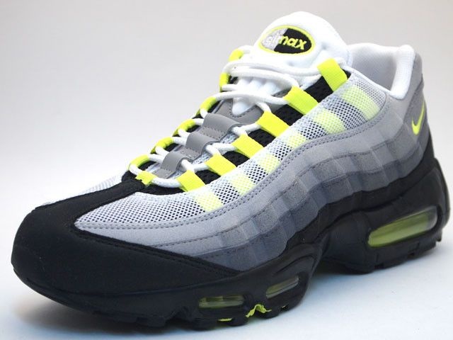 The Nike Air Max 95 returned in the OG Neon colorway in February 2010. Designed by Sergio Lozano, the shoe’s distinctive lines are inspired by nature – specifically, the sorts of striations seen on the walls of the Grand Canyon – as well as the anatomy of the human body. In addition to the unique gradient upper, the shoe is marked by a number of Nike firsts, including a black finish on the midsole and visible Air sole units in the forefoot.